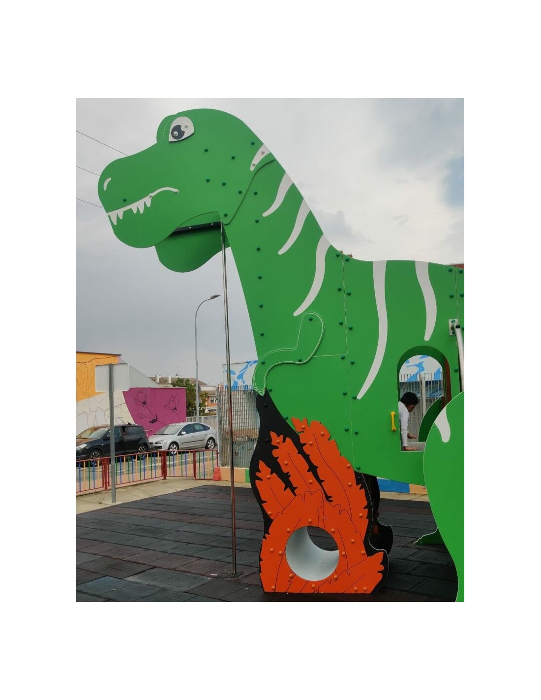 El parque infantil T-Rex es espectacular, se trata de una torre con la silueta de uno de los dinosaurios más icónicos y de 5 metros de altura.